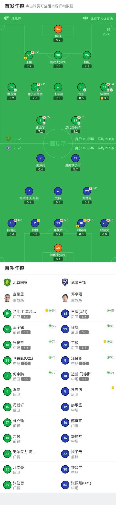Trong trận đấu cuối cùng của vòng thứ 22 của giải đấu, Bắc Kinh Guoan đã thi đấu với Vũ Hán ba thị trấn tại nhà. Trong nửa đầu, Fabio đã đưa ra một điểm và đích thân ghi được một phát súng, và sau đó Serginho đã mở rộng vị trí dẫn đầu của mình; Trong hiệp hai, Lin Liangming đã vượt qua và ghi bàn, và Zhang Yuning rút lui sau một chấn thương. Cuối cùng, Bắc Kinh Guoan đã giành chiến thắng 4-0 ở Vũ Hán.