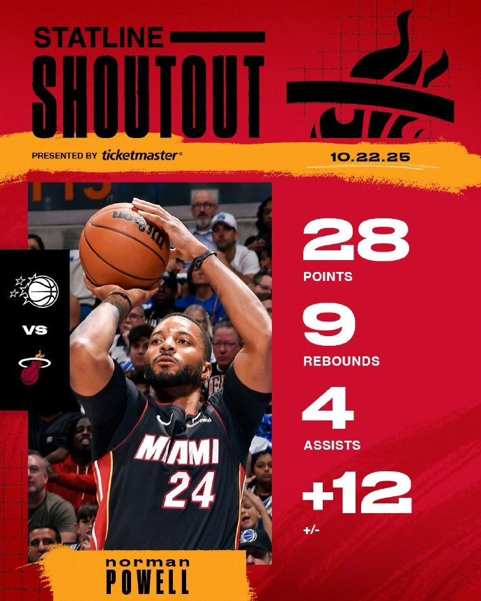 Powell đã ghi được 28 điểm trong trận ra mắt mùa giải thường lệ trong sự nghiệp ở Heat, vượt qua kỷ lục của những siêu sao lịch sử trong đội như Butler (21 điểm), Wade (18 điểm) và O'Neal (16 điểm). Đó cũng là số điểm cao nhất của một cầu thủ Heat trong trận ra mắt đầu tiên kể từ James (31 điểm) vào năm 2010.